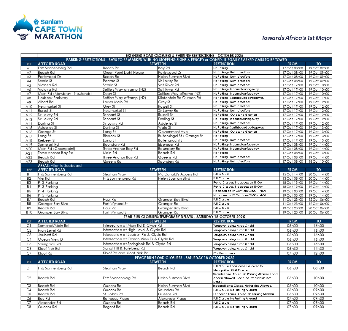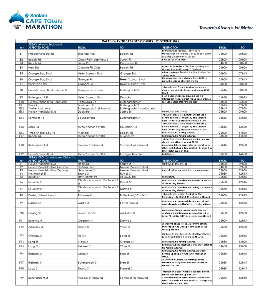 The Sanlam Cape City Marathon is about to happen in Cape City on 18 – 19 October 2025, and we’ve got all of the highway closure particulars that can assist you plan your commute in and across the metropolis.